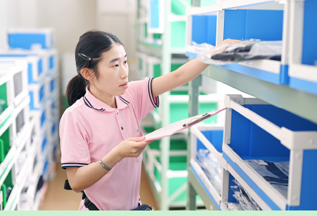 お客さまからの依頼に基づき、被服管理や、商品の購入・発送・棚卸管理を行っています。